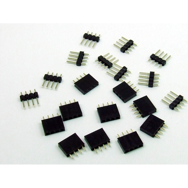 Pack of 10. x pin header 4 pin 2.54 mm pack of 10. x female connector 4-pin 2.54 mm / 10 pieces. x Pin strip 4 way 2.54 mm 10 pcs. x Header 4 way 2.54 mm