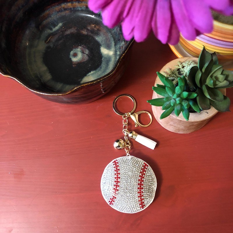 - Bling Fancy Red and White Baseball Keychain Accessories, Sport Keychain with Rhinestone, Rhinestone Bling Baseball Backpack Keychains for Girls and Kids, or as a Rhinestone Bag Charm for Backpacks