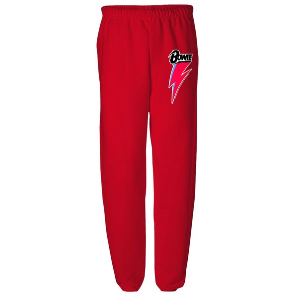 Popfunk David Bowie Curved Lightning Bowie with Name DTL Mens Jogger Sweatpants, Red, Small