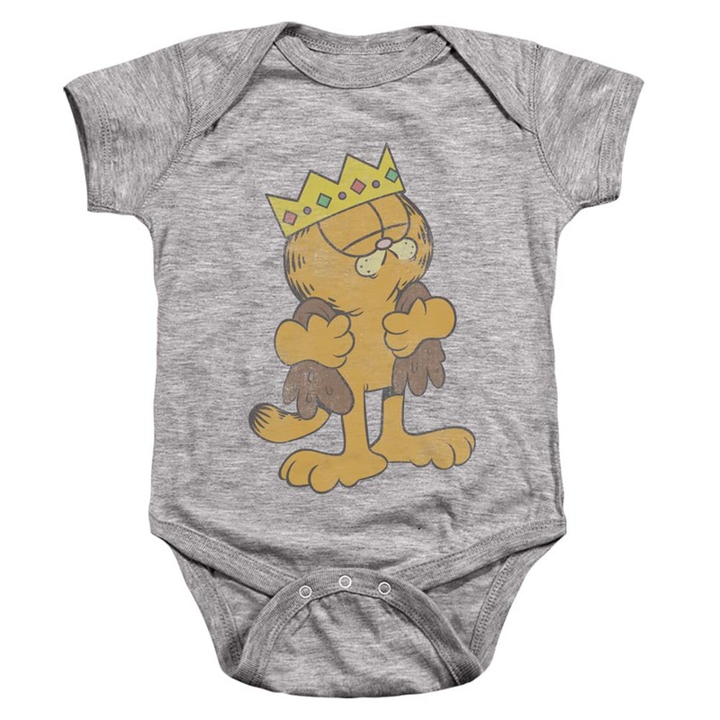 - GARFIELD KING GARFIELD UNISEX SNAP SUIT - Our unisex infant snap suit is constructed of 100% cotton with short-sleeves and is perfect for your baby girl or boy.