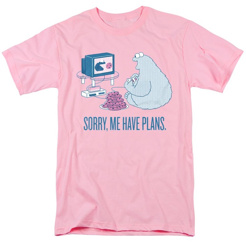 Popfunk Sesame Street Cookie Monster Me Have Plans Unisex Adult T-Shirt - X-Large - Pink