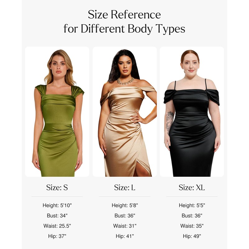 - RUCHED AND OVERLAPPING HIGH-SLIT DESIGN: The ruched detailing at the waist and abdomen, combined with the built-in shapewear, offers double coverage to conceal belly fat, creating a more slimming silhouette, The overlapping high-slit design adds a touch of sexiness while elongating the legs, With its subtle shimmer and luxurious texture, the dress accentuates curves and highlights feminine allure