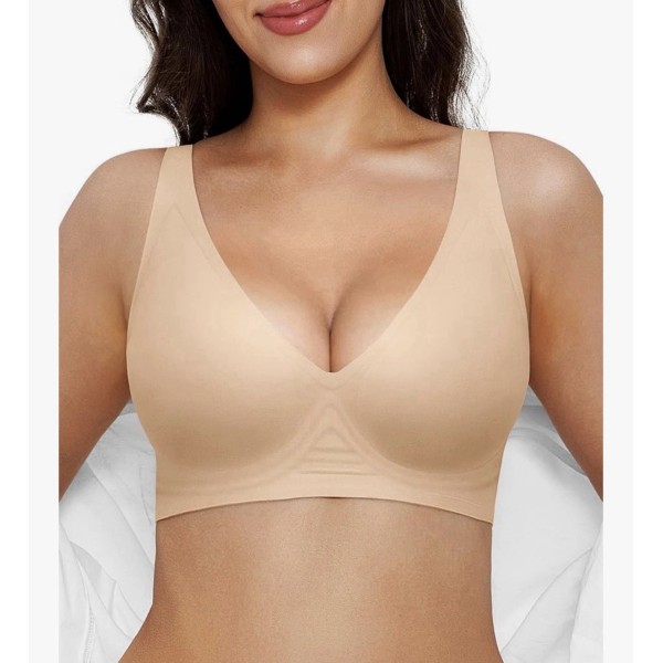Popilush Wireless Bra Size Large Seamless No Underwire Deep-V T-shirt Bralette