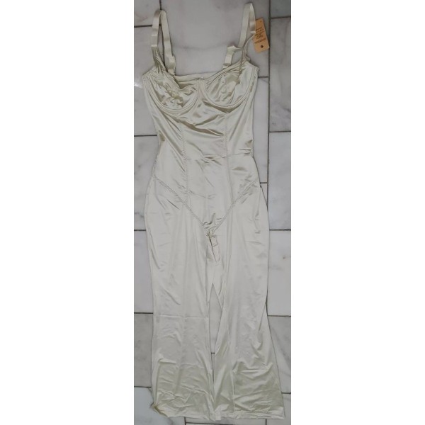 Popilush Women's Size M Cream Ivory V Neck Sleeveless Shapewear Pant Jumpsuit.