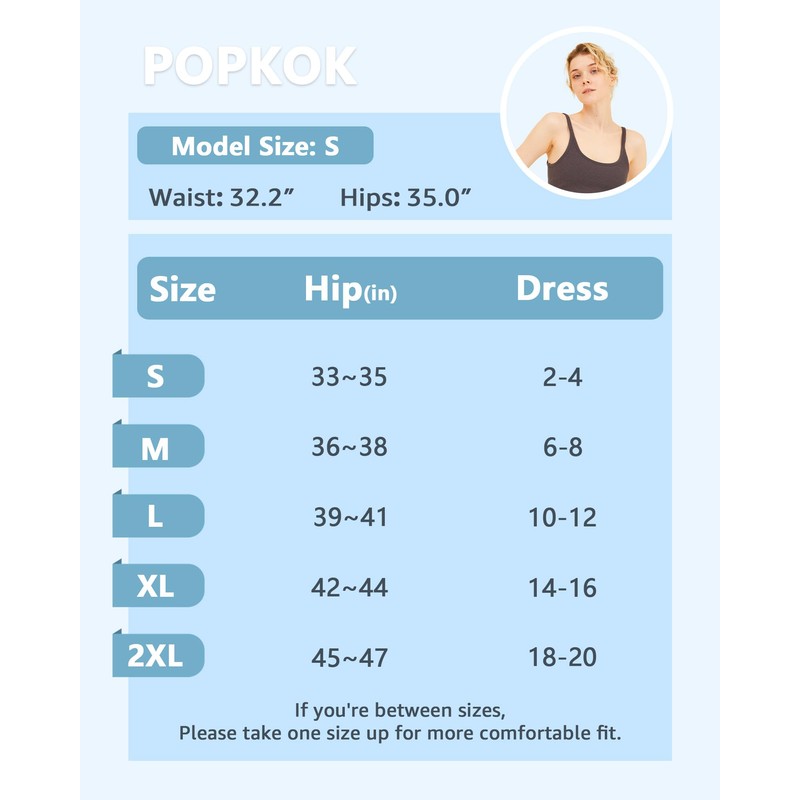 - FIND YOUR BEST SIZE: The POPKOK short slip shorts are from size S-2XL. You can choose your best fit by running the measuring tape around the fullest curve of your hip, the tape should be level and not too tight. When the size is between sizes, please take one size up for a more comfortable fit. If there is any query, please feel free to contact us.