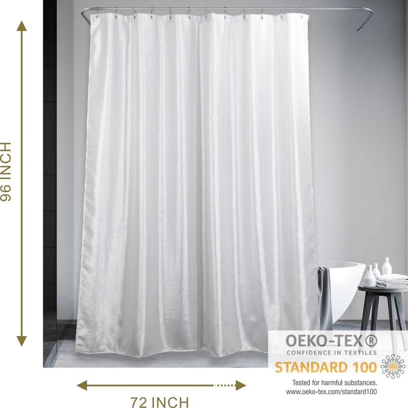 Popkozzi Silver White Shower Curtain: 96 Inch Glitter Sparkle Shiny Extra Long Shower Curtains for Bathroom - Waterproof Washable Luxury Elegant Fancy Glam Metallic Shimmer Satin Bath Curtain - 72x96