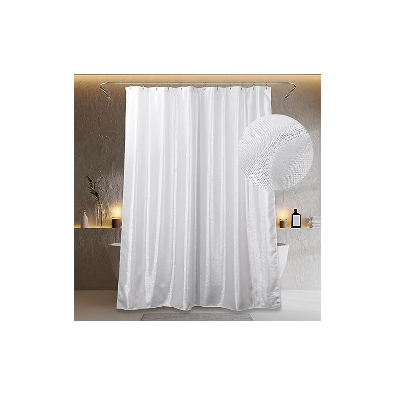 - CHIC SPARKLE DESIGN FOR BATHROOM: solid white polyester fabric blended with metallic silver threads creates luxurious texture and elegant look; subtle shimmer with a hint of sparkle, allowing light bounce off beautifully; this fancy white glitter shower curtain, decked out glamorous appearance, creating a festive mood, perfectly matches any bathroom styles