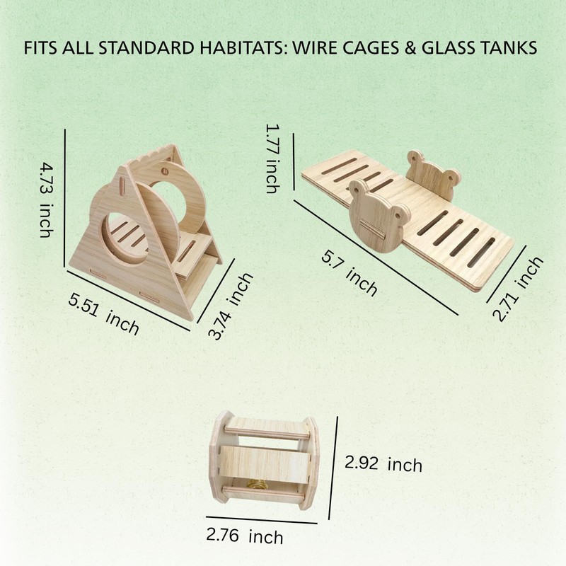 Poplar Wood Hamster Toys Set: Triangle Swing, Frog Seesaw & Bell Roller - Chewable Cage Decor for Dwarf/Syrian Hamsters, Gerbils, Mice (秋千、响铃、跷跷板、)