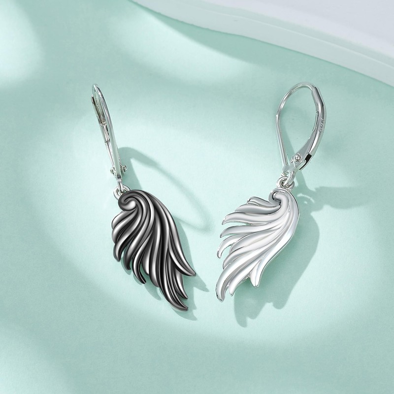 POPLYKE Angel Wing Earrings Sterling Silver Guardian Angel Wings Leverback Earrings Angel Wings Dangle Drop Earrings Jewelry for Women