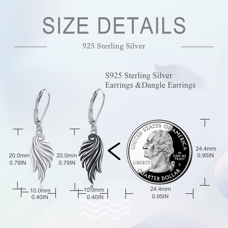 POPLYKE Angel Wing Earrings Sterling Silver Guardian Angel Wings Leverback Earrings Angel Wings Dangle Drop Earrings Jewelry for Women
