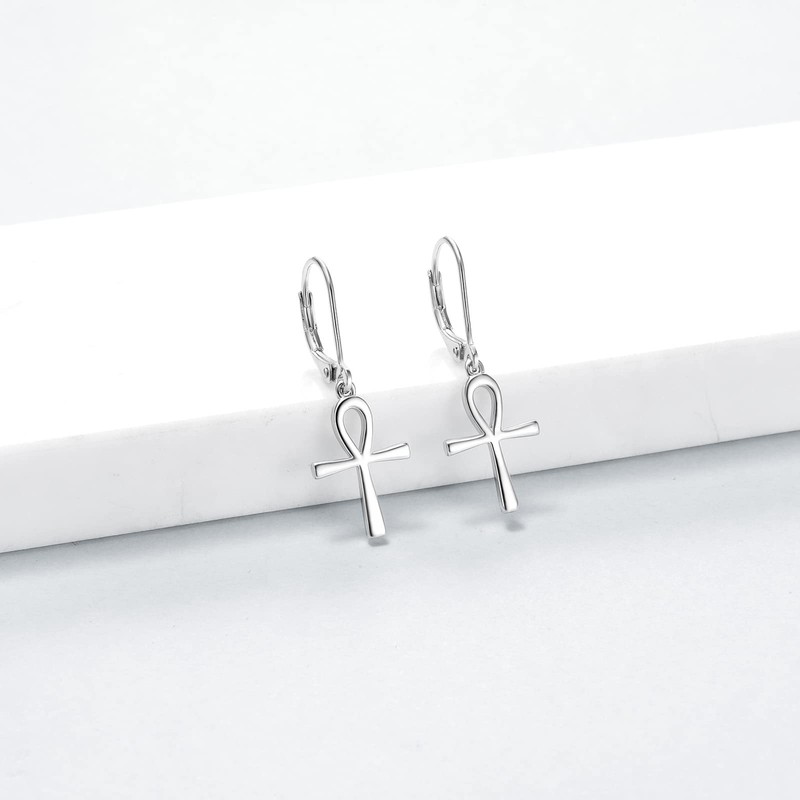 POPLYKE Ankh Cross Leverback Earrings for Women 925 Sterling Silver Cross Dangle Earrings for Girls Birthday Gifts