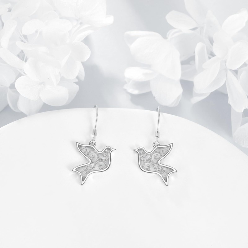POPLYKE Dove Earring 925 Sterling Silver Dangle Filigree Pigeon Bird Jewelry for Mother Daughter Sister Grandma Gift