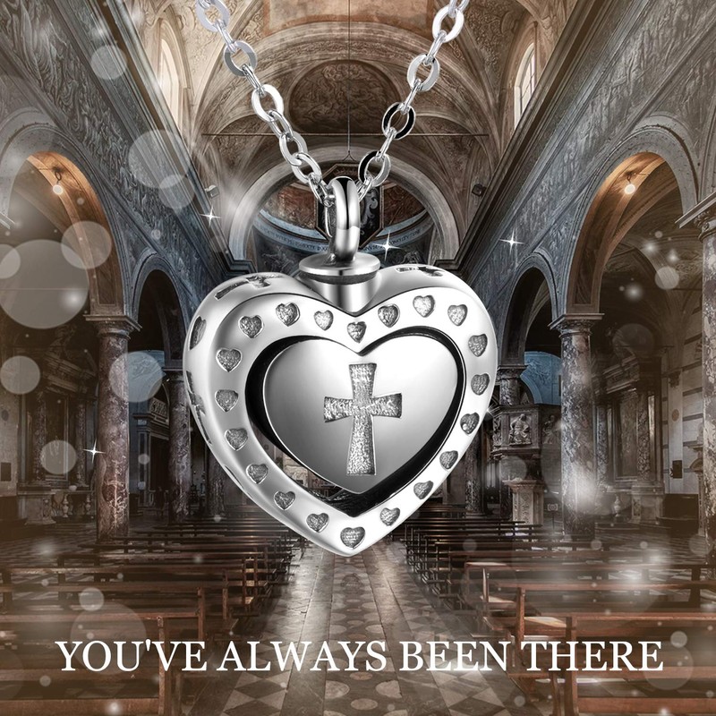 - ❀MEMORIAL JEWELS❀ Urn Necklace for ashes, engraved many small heart with ashes collecter, easy to put-in. Cross stands for nice ending in life , the symbol “heart” stand for memories between yous