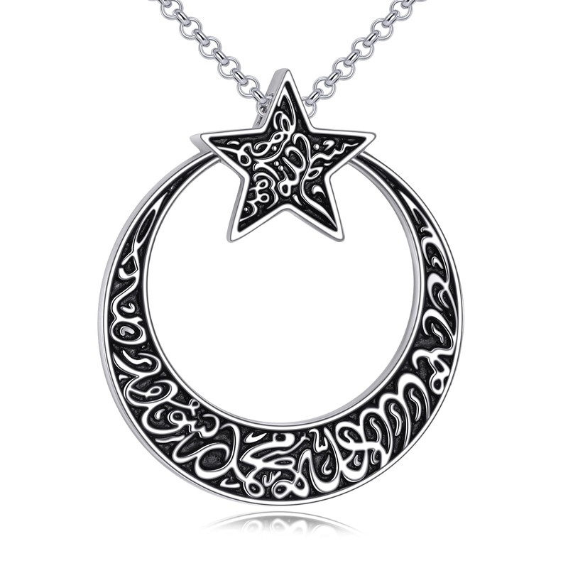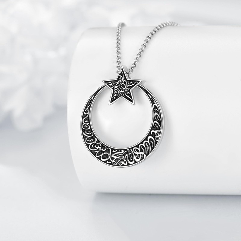 POPLYKE Moon Star Muslim Islamic Religious Pendant Necklace for Men Women Sterling Silver Religious Allah Jewelry Gift