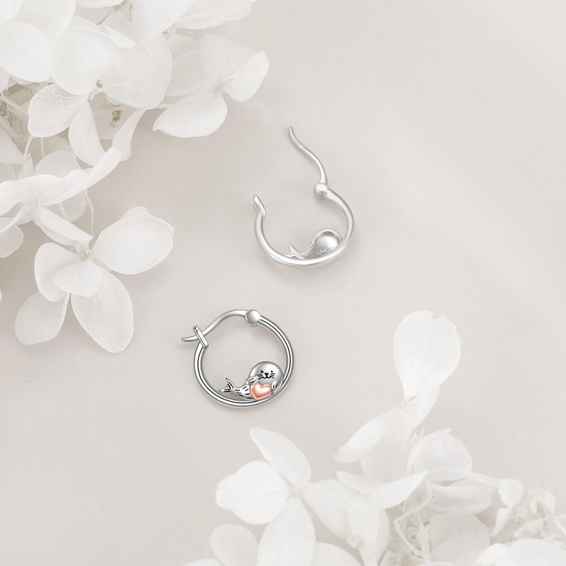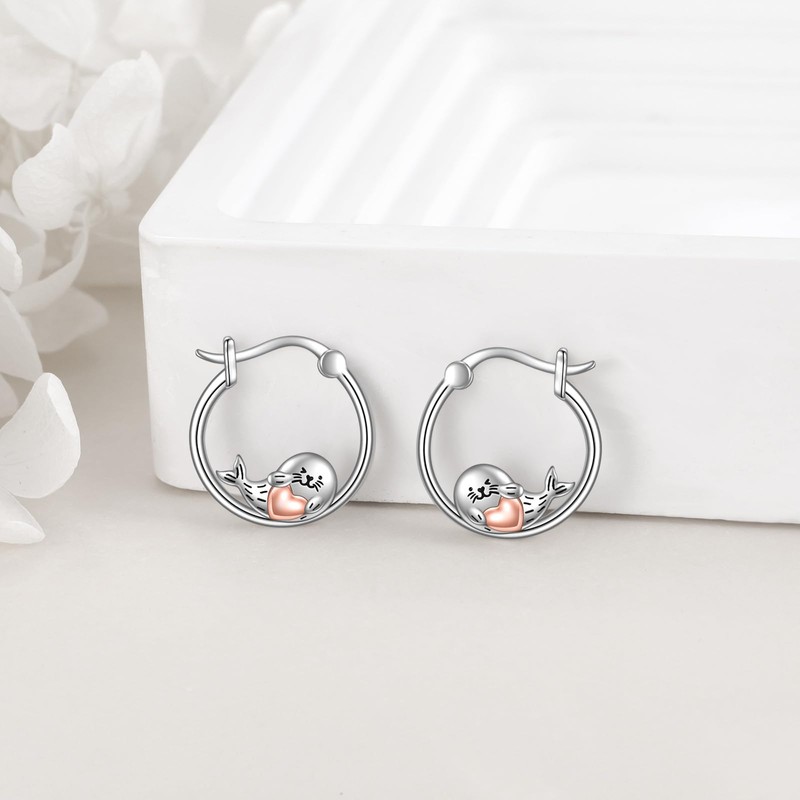 POPLYKE Seal Earrings for Women 925 Sterling Silver Hoop Earrings Animals Jewelry Gift for Girls (seal)