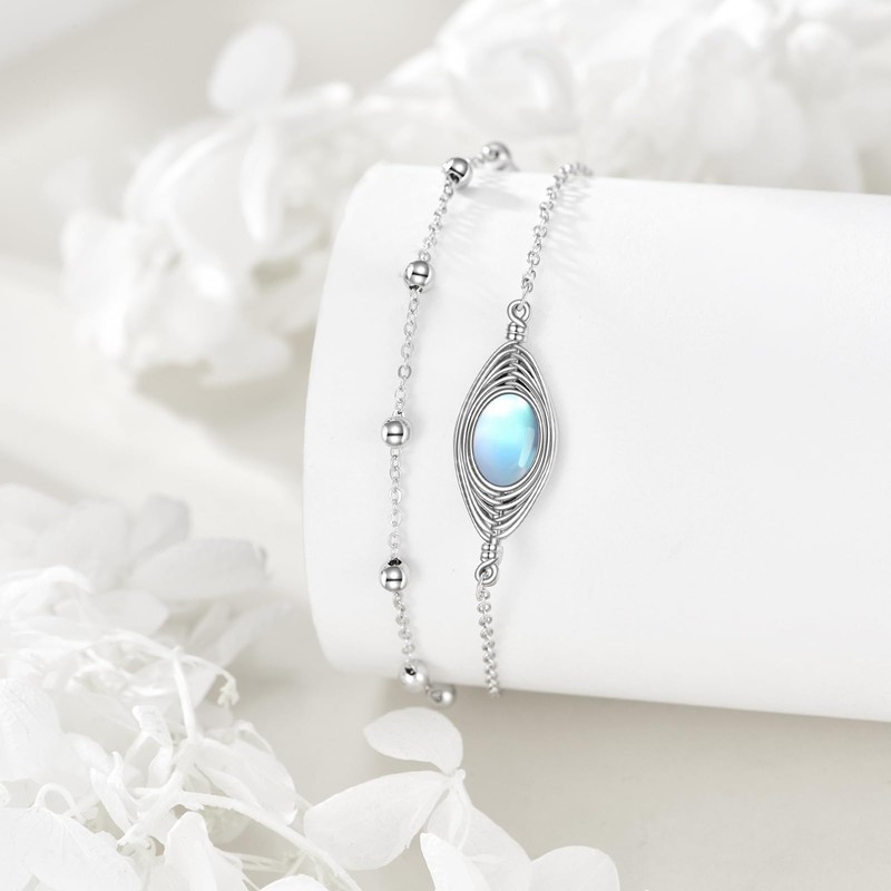 POPLYKE Sterling Silver Moonstone Bracelet for Women Adjustable Charm Bracelets Jewelry Gifts for Mom Friends Daughter
