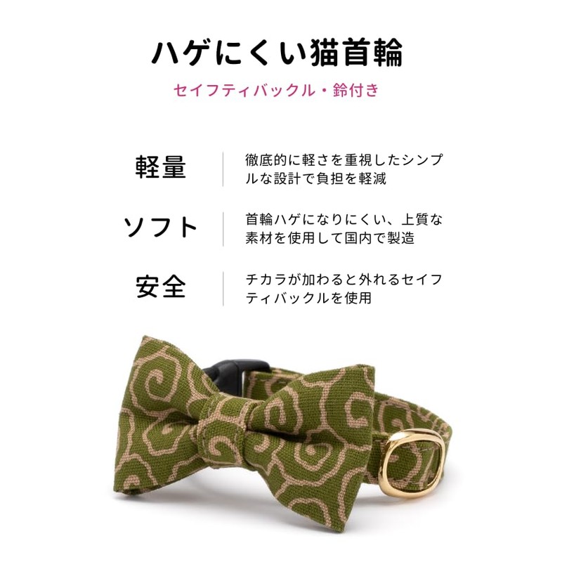 Poponcat Cat Collar with Ribbon, Arabesque Uzumaki, Safety Buckle, Bell Included, Bald Resistant (Teal, M)