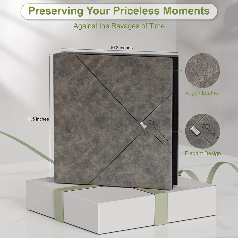 - 💝Durable Construction: Crafted with high-quality vegan leather offer a more animal-friendly option, while retaining the look and feel of a genuine leather photo album cover. It ensures long-lasting protection for your precious photos.