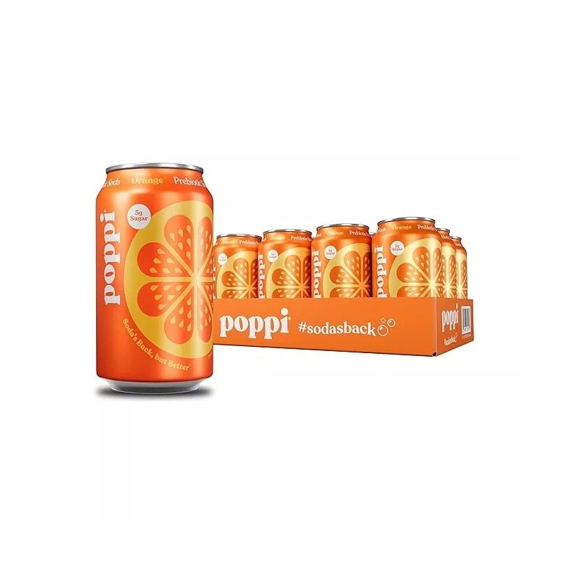 Poppi Orange Flavor, 12 oz, Pack of 12, Sparkling Prebiotic Soda