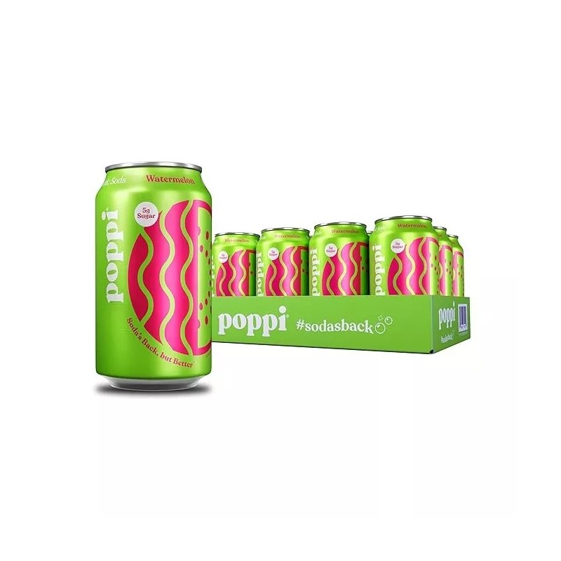 Poppi Watermelon Flavor, 12 oz, Pack of 12, Sparkling Prebiotic Soda