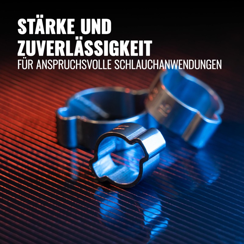 - Double-ear clamp is ideal for use on permanent connections in the compressed air area as well as smooth-walled hoses