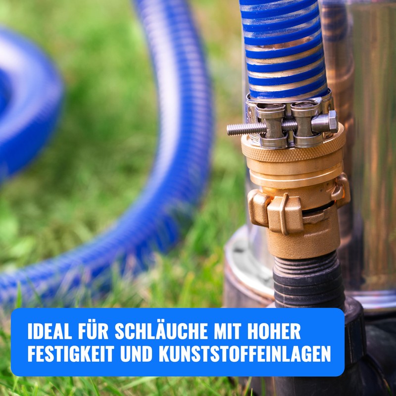 - Excellent for attaching suction and compressed air hoses with high degrees of hardness or with plastic or steel inserts