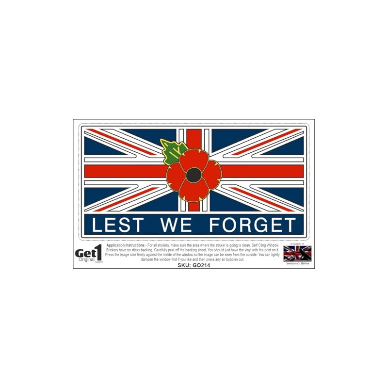 - Featuring Poppy Logo and British Union Jack with wording "Lest We Forget"