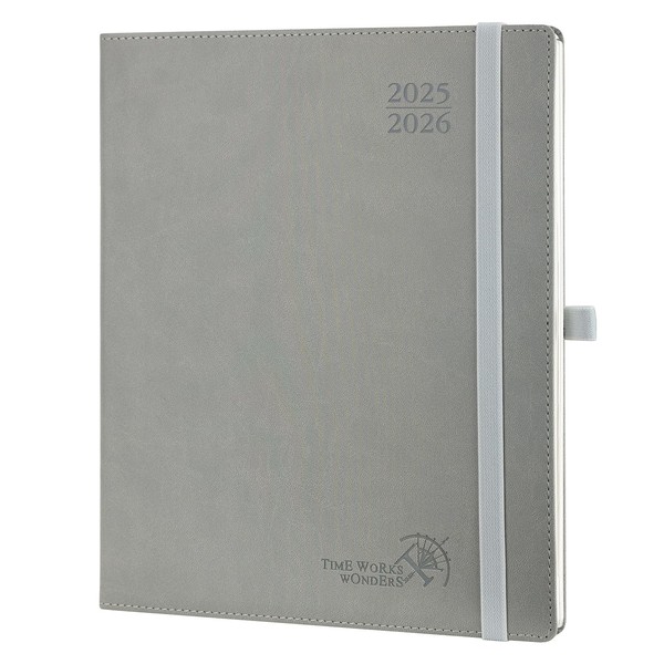 POPRUN 2025-2026 Academic Diary Week to View Large (26.5x21.5 cm) Soft Cover 17 Months (Aug'25 - Dec'26) Vertical Weekly Planner 25/26 Mid Year Diary (Grey)