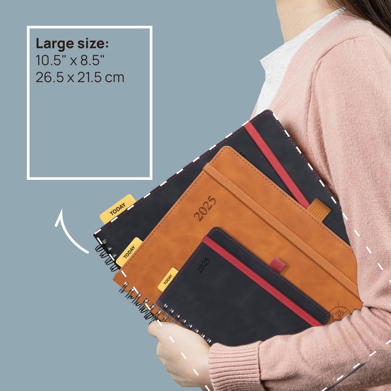 POPRUN 2025 Planner Weekly Notebook Calendar [Large Size 8.5'' x 10.5''] - Agenda 2025 Appointment Book with Monthly Tabs, Spiral Soft Cover, Inner Pocket, 100 GSM - Soft Pink
