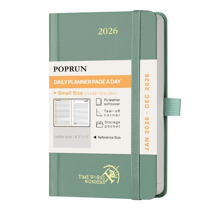 - 1 PAGE PER DAY FOR 365 DAYS: This POPORUN daily planner (Jan.2026-Dec.2026) offers spacious daily planning with hourly plans for your appointments that organize your busy daily routine (from 08:00 to 20:00).