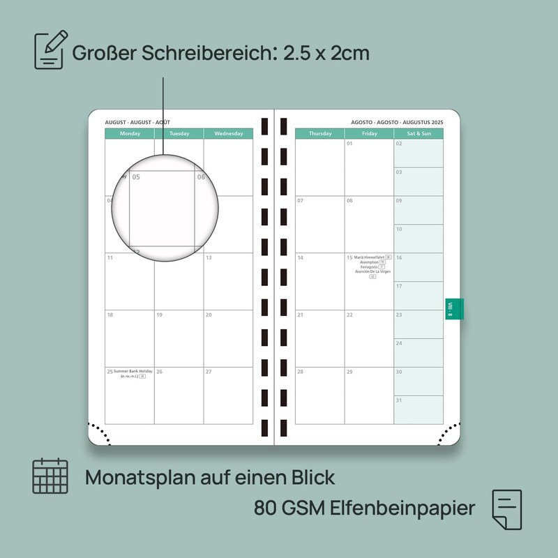 - 17-month pocket calendar: This Poporun diary can be used for up to 17 months (from August 2025 to December 2026). Whether you are recording your daily appointments or organising your daily life, this calendar is a good choice.