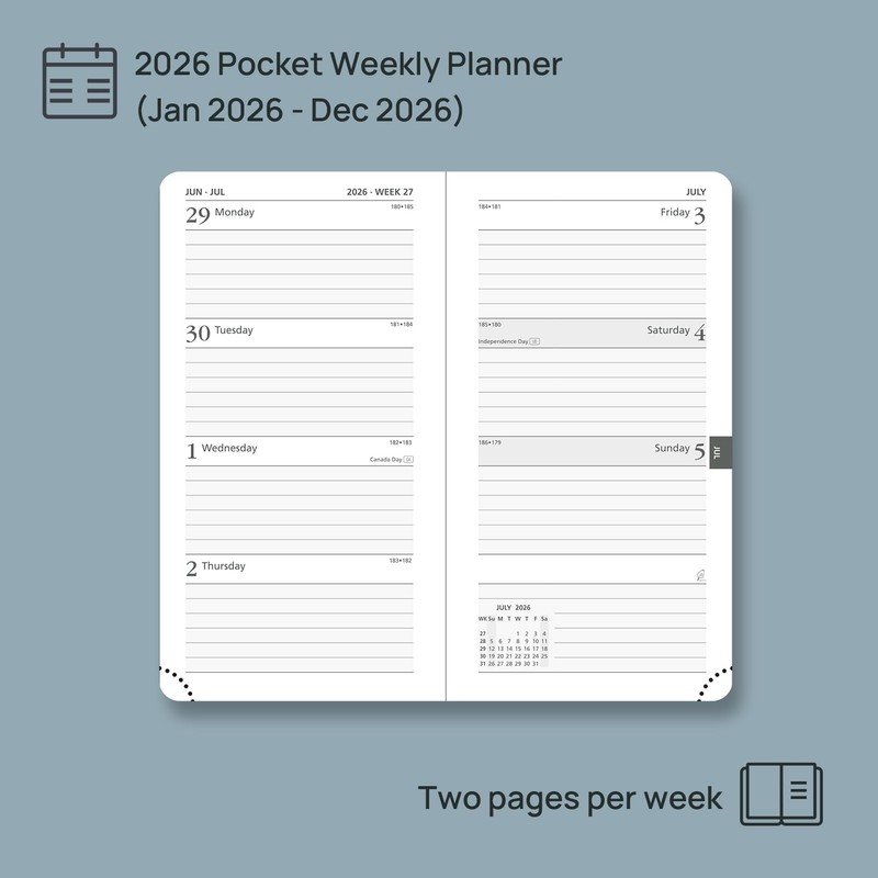 - JAN.2026 - DEC.2026 POCKET PLANNER: This small planner covers 12 months of 2026. The size is 3.5'' X 6.5'', pocket calendar for purse, comfortable to carry and use, which makes your busy daily routines organized.