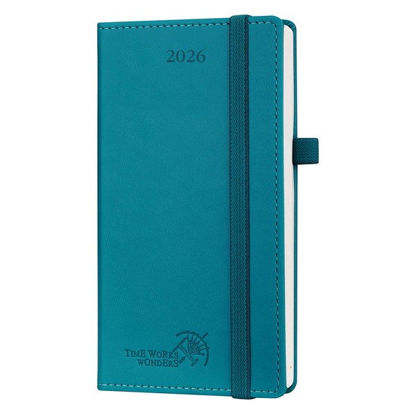 POPRUN Pocket Calendar 2026 (Slim Size-3.5'' x 6.5''), 12 Months (Jan. - Dec. 2026) Small Planner Weekly and Monthly for Purse with Pen Holder, Storage Pocket, Vegan Leather Hardcover - Pacific Green