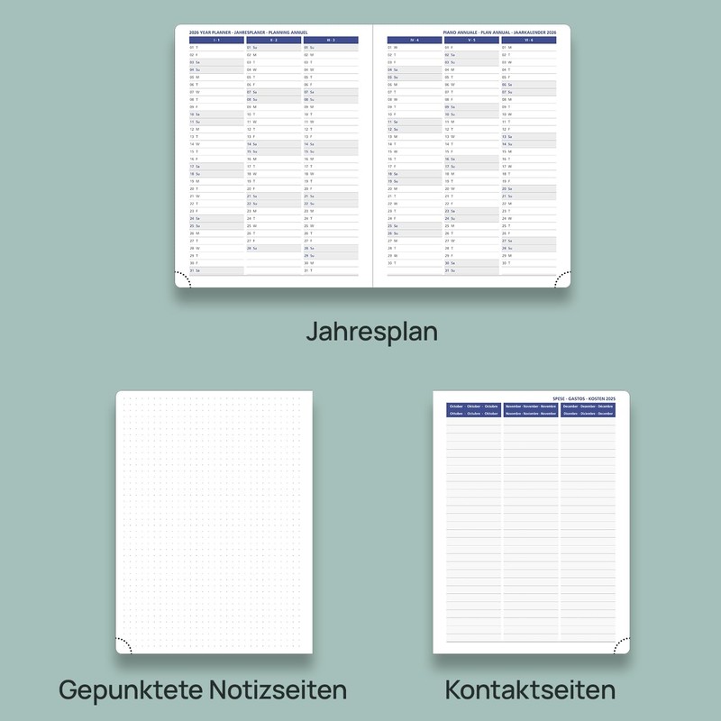 - Weekly plan/monthly plan: 1 week 2 page weekly calendar provides a complete and clear weekly overview (from Monday to Sunday). Each monthly plan includes a monthly overview and a notes section.