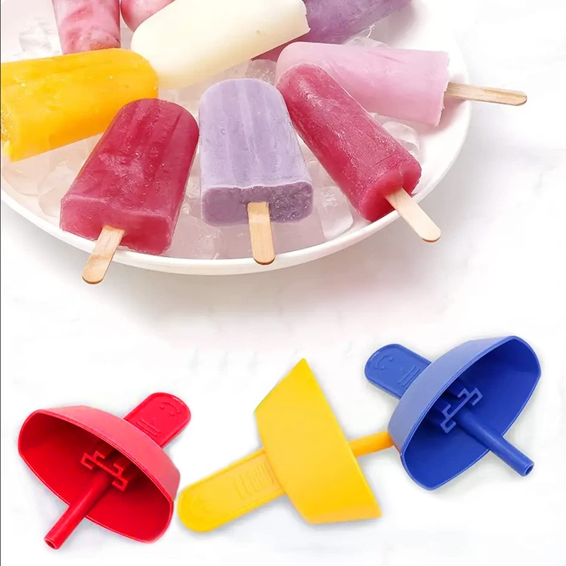 Popsicle Holder, 3 Pcs Multicolor Resuable Plastic Popsicle Sticks Non-Drop Popsicle Holder for DIY Ice Cream, Homemade Ice Pop (Blue, Red and Yellow)