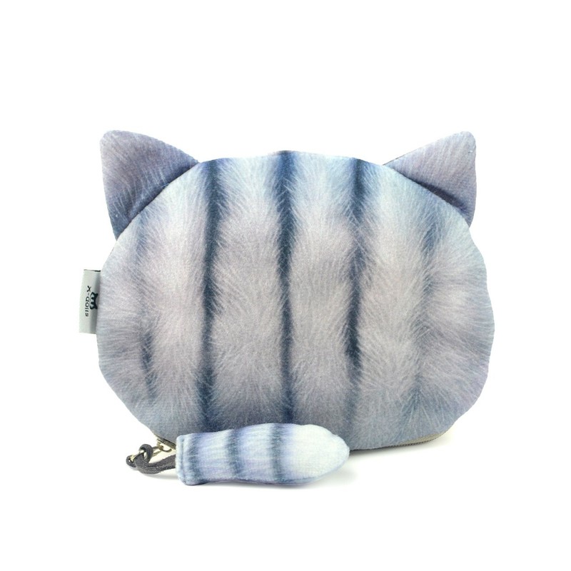 POPUCT Cute Lifelike 3D Cat Face Bag Zipper Case Coin Money Purse (C)