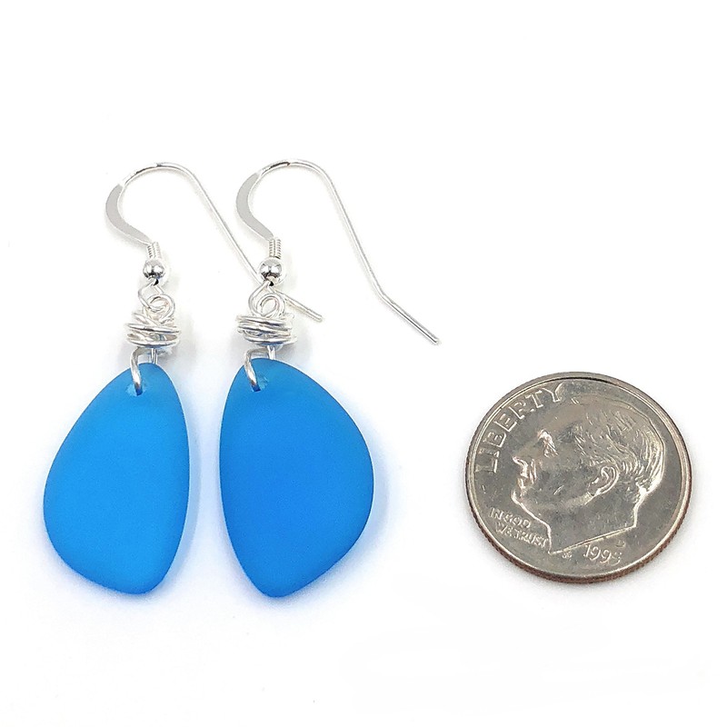 Popular Vivid Aqua Beach Sea Glass Earrings with Handmade Knot and Sterling Silver Hooks by Aimee Tresor