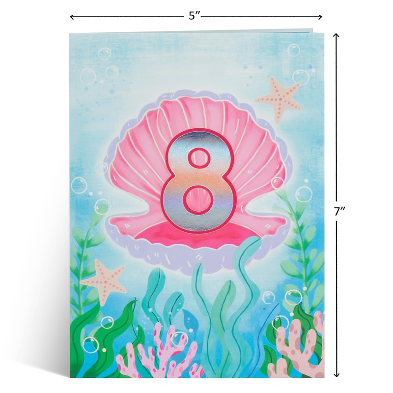 POPWOW Happy 8th Birthday Pop Up Card, Mermaid, Pearl Shell, Ocean, 3D Greeting Card, Gifts for Girls, Daughter, Granddaughter, Niece, 5x7 - Includes Envelope And Message Note