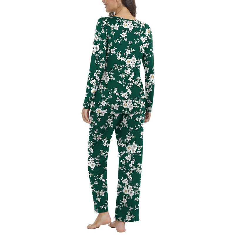 POPYOUNG Plus Size Ladies Pyjamas 2 Piece Pjs for Women Sets Fall-Winter Long Sleeve Lounge Sets Long Pants Sleepwear XL, Floral-Green