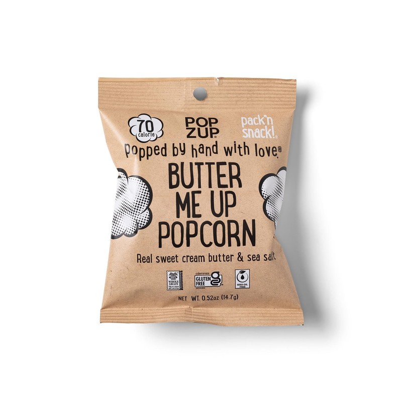 Popzup Popcorn - Popped & Seasoned by Hand with Pure and Simple Ingredients, Gluten Free and non-GMO (12 Butter Me Up 70 Calorie Bags)