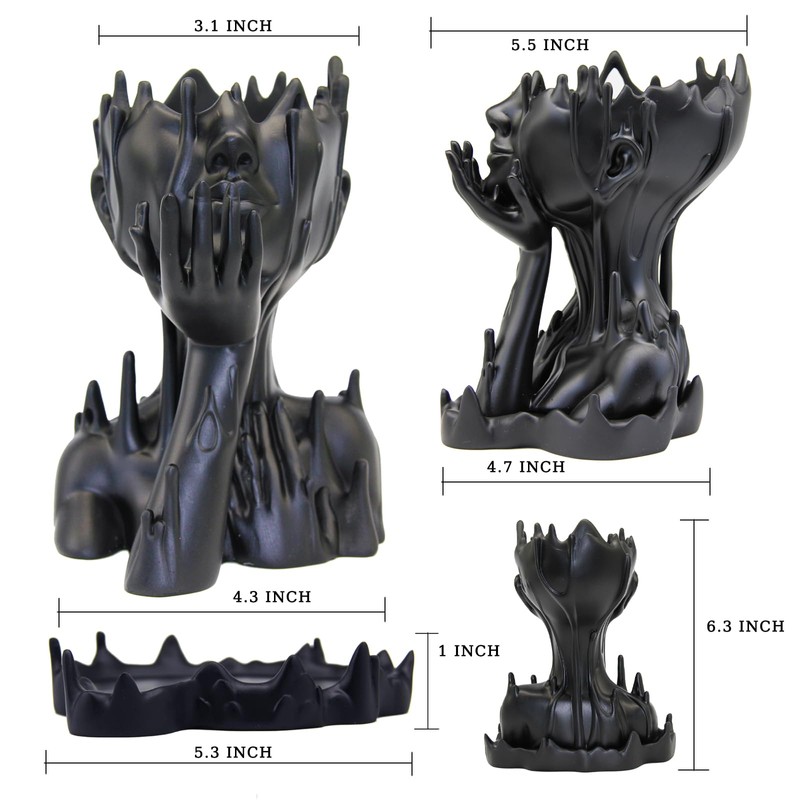 Poranlem Melted Woman Goddess Head Planter Indoor Medusa Face Flower Pot with Drainage and Tray Unique Succulent Pot Gift for Home Decor Dopamine Artistic Room (Black)