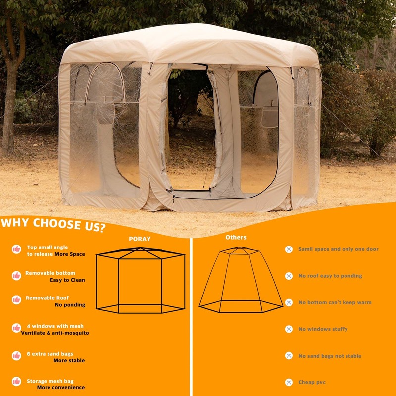 - Lasting Durability & UV Defense - Crafted with heavy-duty Oxford fabric and transparent PVC, Our Porayhut 10x10 Pop up bubble tent delivers unmatched durability, waterproofing, and tear resistance. The silver-coated UV layer ensures superior sun protection, making this PVC Screen House ideal for extended camping trips, backyard lounging, or outdoor adventures. Stay shielded in style