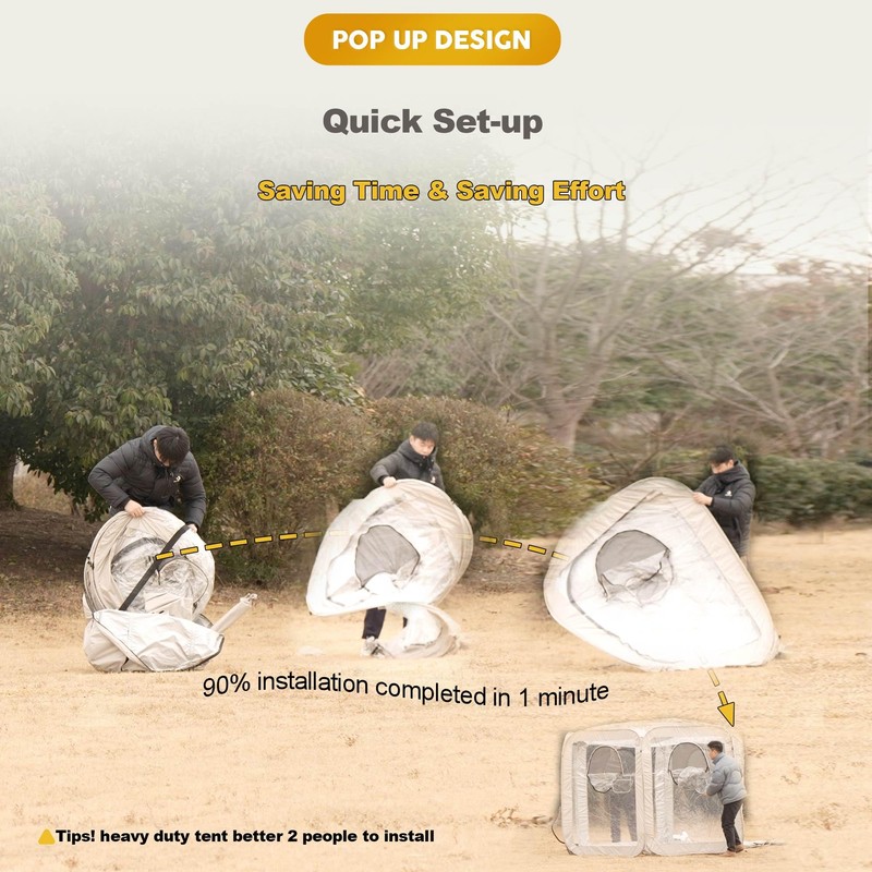 - Versatile for Every Outdoor Escape - From lakeside camping to garden parties, this Pop Up Bubble Tent blends 360° panoramic views with bug-proof PVC screens. Host barbecues, stargaze, or create a cozy winter lounge—its sleek design elevates any setting, turning ordinary outings into luxurious outdoor experiences