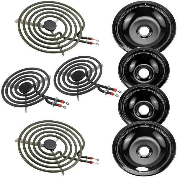 - 【Material Structure】Our electric burner element & drip pan replacement are completely designed with non-polluting, safe and highly durable materials. Extends the service life of your range stove. Easy to install, saving time and money. The drip tray has the properties of wear resistance, aging resistance, corrosion resistance, etc. Guaranteed to exceed OEM specifications