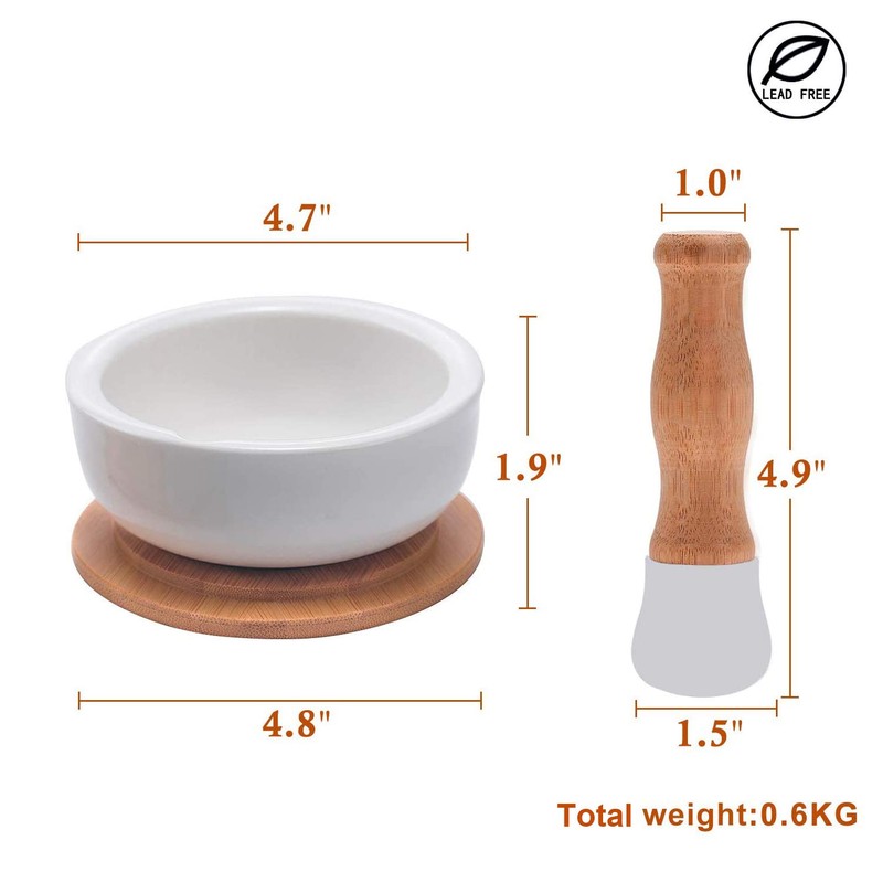 - 🥑 DIMENSIONS: Mortar: 4.7" diam., 1.9" high. Pestle: 4.9" long.