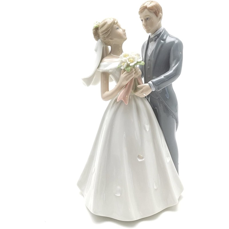 Porcelain Painted Classic Bride and Groom Statue Cake Topper 8.25" Tall