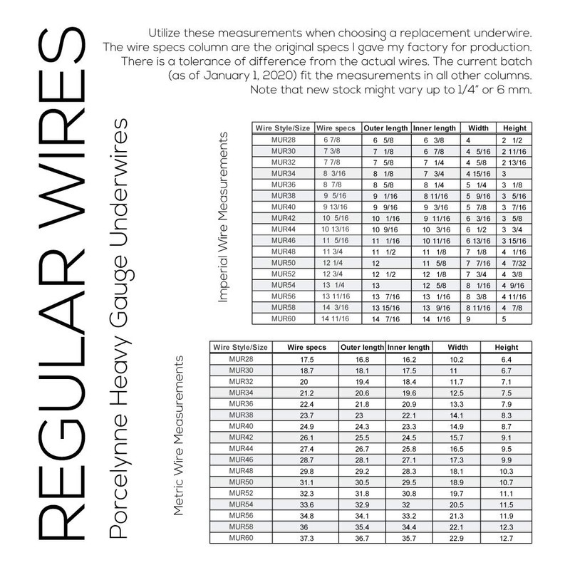 - Heavy gauge (1/8" wide) coated spring steel underwire for bras, bustiers, corsets or clothing. These wires are considered a regular, daily wear length, which may be shorter than some wires, but are too long for plunge or demi style wires. When replacing a wire, please check length measurements.
