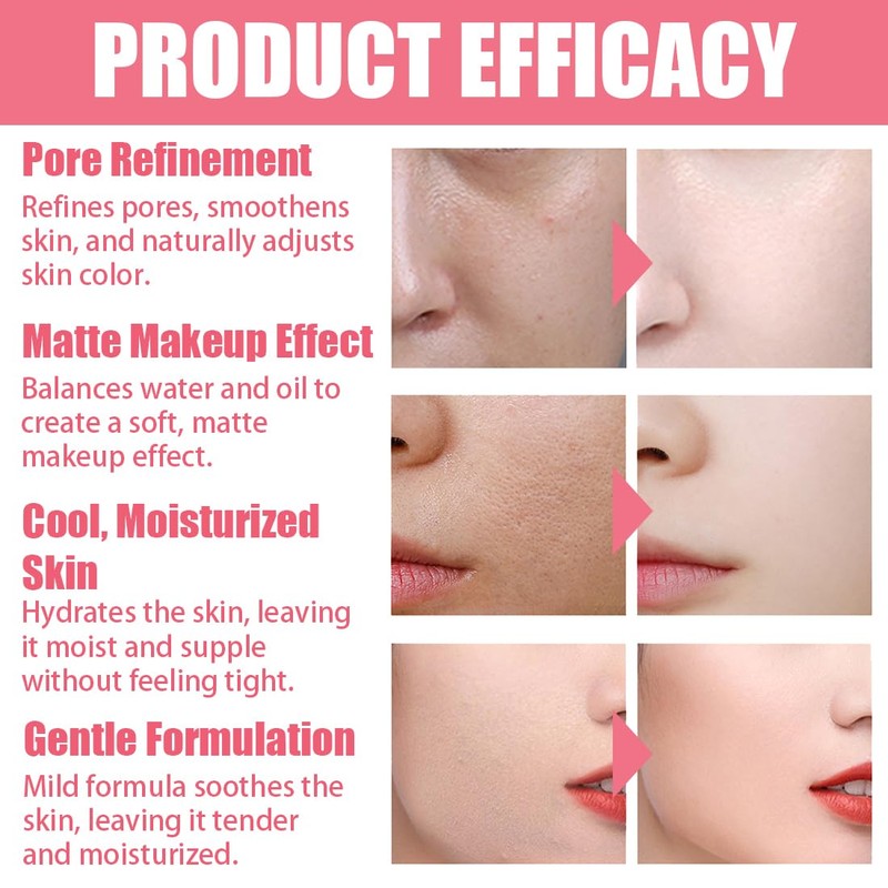 QUICK TO USE: This pre-makeup lotion is great for moisturising the skin and imprinting clay pores, apply a layer before applying foundation and your foundation will be more natural, clean and translucent, giving you a more beautiful look for subsequent make-up application. It can also be used after applying moisturiser to help restore your skin's hydration balance.