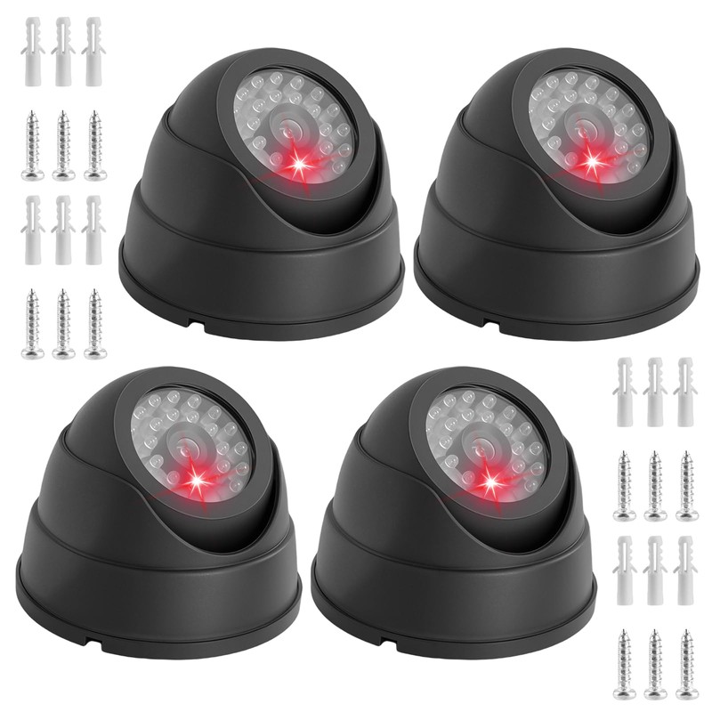 4 Stück Kamera Attrappe, Dummy Kamera, Überwachungskamera Attrappe Fake Überwachungskamera Sicherheitskamera Mit Blinkendem Led-Licht, Attrappe Kamera Für Innen Außenbereich Schwarz