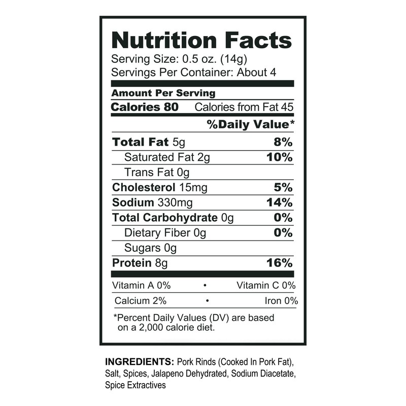 - ✔️ 0 CARBS PER BAG! Pork King Good Pork Rinds are not just any old snack food. They’re the ultimate naturally low-carb bite! An addictively delicious treat for anyone following a ketogenic, paleo, or diabetic diet! Looking for sugar-free snack options for the kids? Our chicharrones are a great alternative to traditional potato chips! Go ahead, “pig” out!